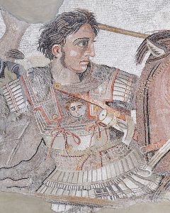 Александар Македонски, познат и као Александар Велики (356-323 пре н.е.) био је краљ целе Грчке, фараон Египта и цар Персије. Освојио је цео, тада, познати свет. Увек се борио у средини бојног реда, док је војсковође стављао на стране. Према легенди, у бици код Иса предводио је 40.000 војника наспрам милион војника Персије. На бојном пољу је остало да лежи 600.000 Персијанаца, а Грка око 4.000.