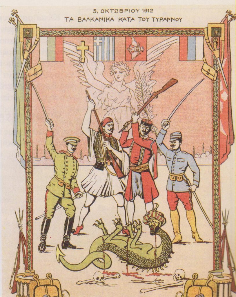 Време је великих турбуленција у Европи. Руско-Немачки савез се распада, Француска нема добре односе са Немачком, Енглеска има намеру да сачува, а уколико услови то допусте, прошири своје колоније. На Западу ништа ново, а Балкан, као буре барута које је одувек чекало тренутак праска, спремао се за рат. Народи који су у средњем веку имали државу, Грци, Бугари и Срби, били су потиштени од стране Османског царства. Султан више није имао неограничену моћ, а држава му је била све слабија. Највећи ударац био је тај, што је Османско царство изгубило више територија за последњих сто, него што је добило у претходних 200 година. Позција је била више него идеална за напад. Оформљен је Балкански савез и сви нишани били су уперени ка “Болеснику на Босфору“. Интерес Србије у овом рату био је повратак територије старе Србије, данашње Македоније. Прва је напала Црна Гора, а убрзо се нападу прикључила и Србија. Ношени херојским победама, од којих је прва у низу била Кумановска битка, Србија је брзо напредовала. У њој је командант био чувени војсковођа, Радомир Путник. Интересантно за ову битку је да се српски трубач арбанашког порекла, Ахмет Адемовић, увукао међу турску восјку неопажено. Даровити младић је по слуху научио турски марш за повлачење, иако је у том тренутку војска била у налету и захваљујући његовом инструменталу, почела је заиста да се повлачи. Он је брзо прешао на страну Срба и тамо одсвирао музику за јуриш, чиме је војска силовито кренула да туче по непријатељу. Срби су били изненађени колико је Османска војска слабо пружала отпор. Ово није била војска на коју су навикли, јасан показатељ стања у царству и брзе пропасти која ће уследити. Следећа велика битка одиграла се код Битоља. Ношена крилима победе код Куманова, српска војска се одлучила на јуриш и агресиван напад. Команданти, генерал Путник и генерал Бојовић имали су тактику одбацивања непријатеља ка југу, где би их дочекали грчки бајонети. У тој намери су и успели, а Стара Србија је опет враћена! Изгубљена је оружјем, а једино на тај начин је могла да буде и враћена. После десетина мегдана, током шест векова османских налета у Европи, коначно је било јасно да је некада славна Сулејманова царевина пала на ранг другоразредне силе. Овоме су, дакако, допринели унутрашњи немири и застарели систем у земљи.