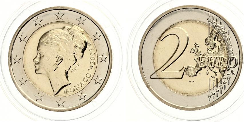 Кованица од два евра израђена 2007. године сматра се драгоценом у нумизматици, јер је на њој утиснут печат у част принцези Грејс Кели.